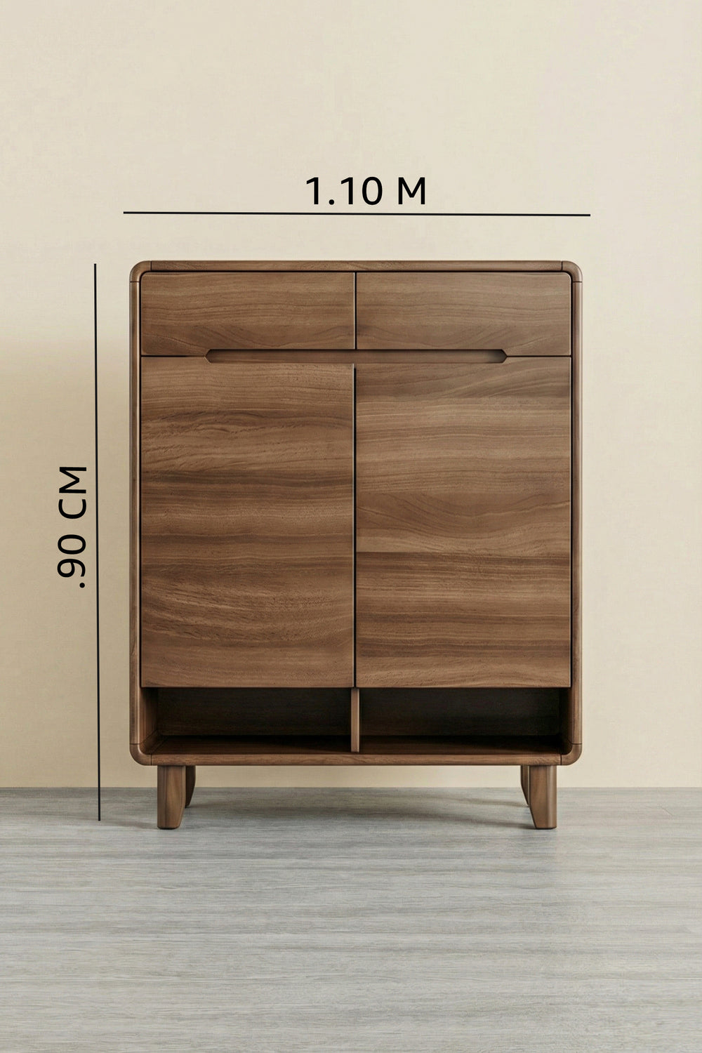 Keep your entryway, bedroom, or living area organized with the Lotus Storage Console. Designed for both style and practicality, this piece features two doors, four interior shelves, two drawers, and two open storage boxes at the bottom—perfect for shoes, accessories, or everyday essentials.