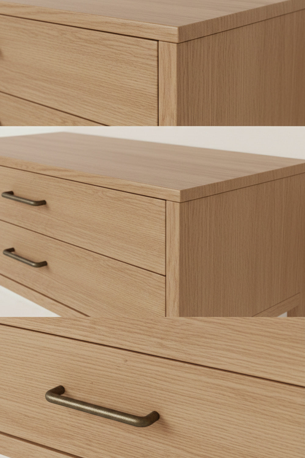 Dual Drawer System: Two spacious drawers equipped with sleek, minimalist metal handles for a modern touch.