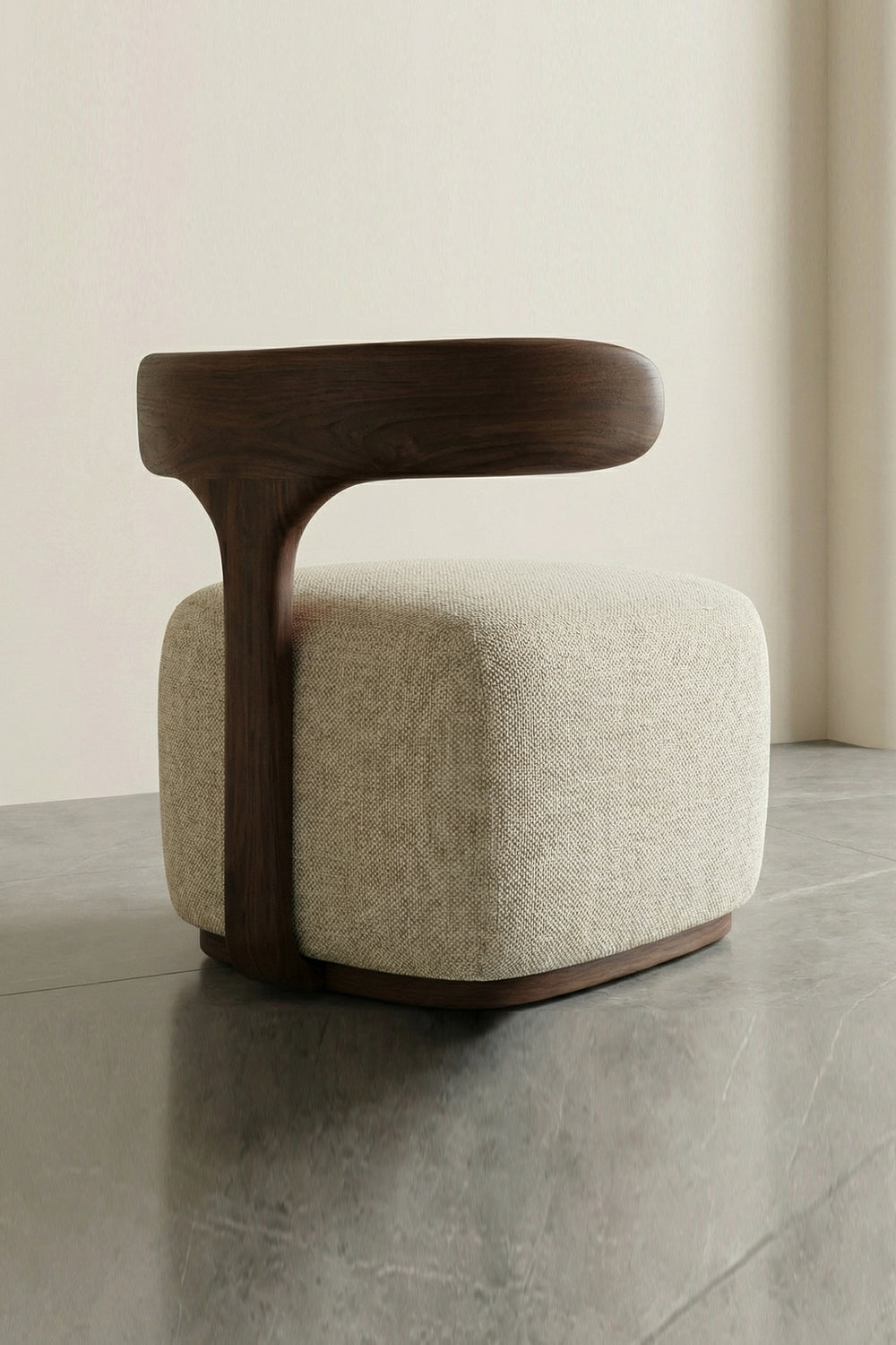 The Jerry Chair is a true masterpiece of modern furniture design. It challenges the traditional armchair silhouette by blending a bold, cubic upholstered base with a sleek, wrap-around solid wood backrest. This chair isn't just a place to sit; it's a sculptural statement piece that adds an avant-garde touch to any contemporary home.