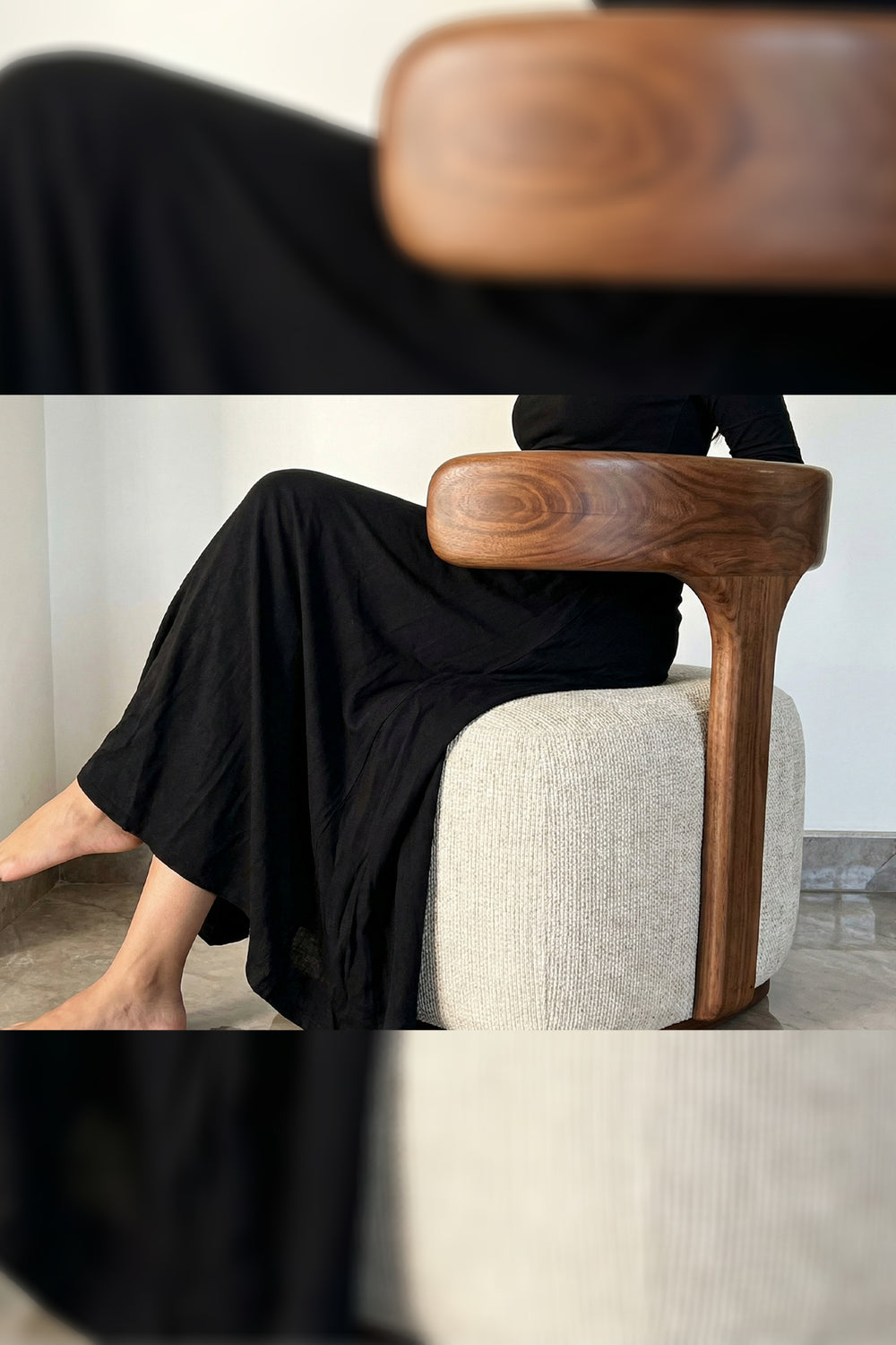 Sculptural Woodwork: Features a stunning, continuous solid wood frame that supports the back with an elegant, gravity-defying curve.