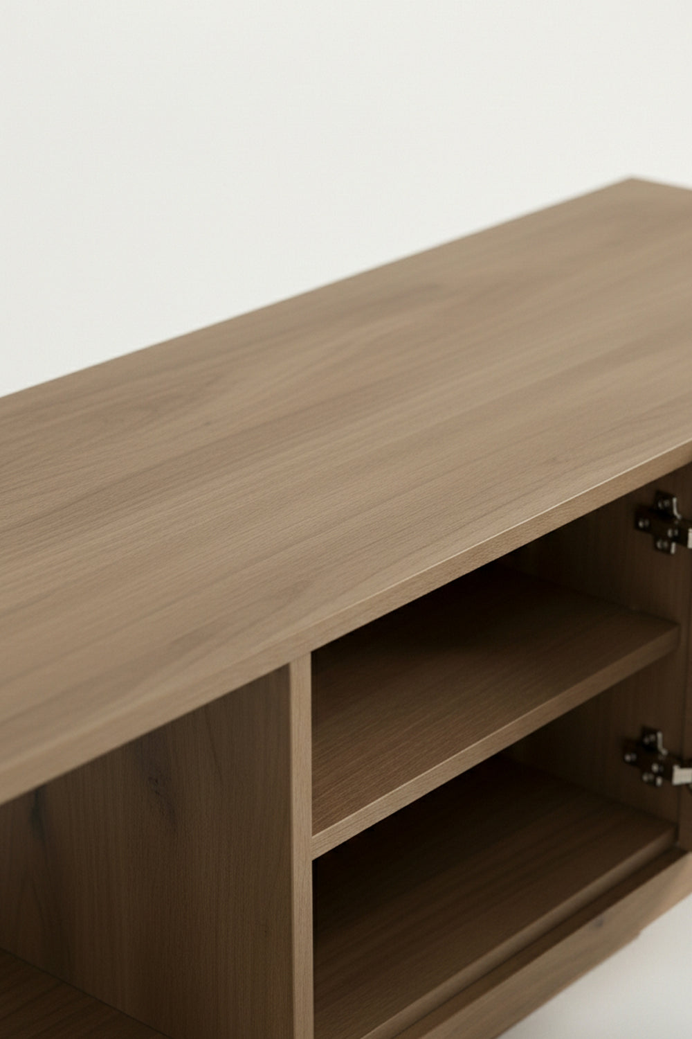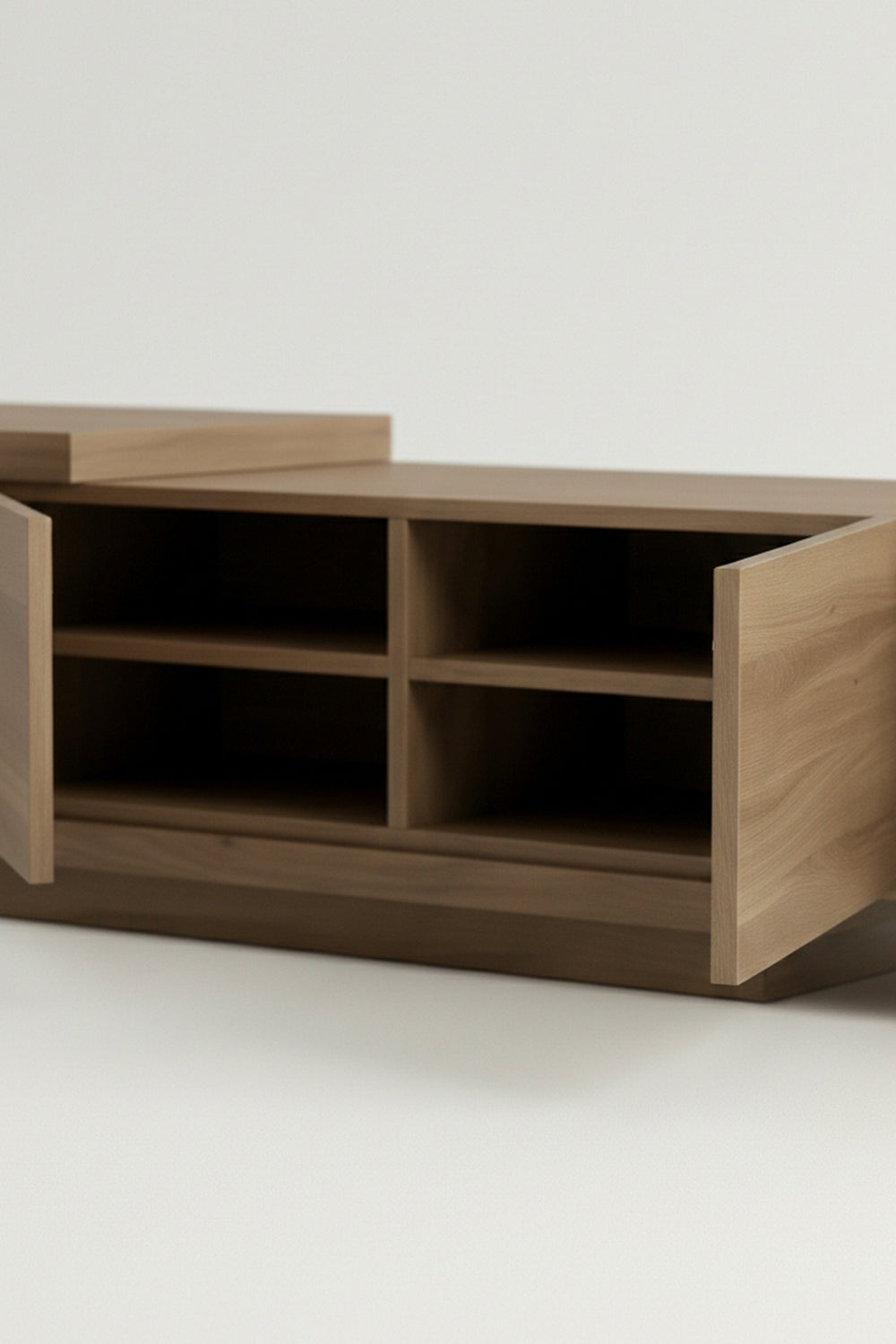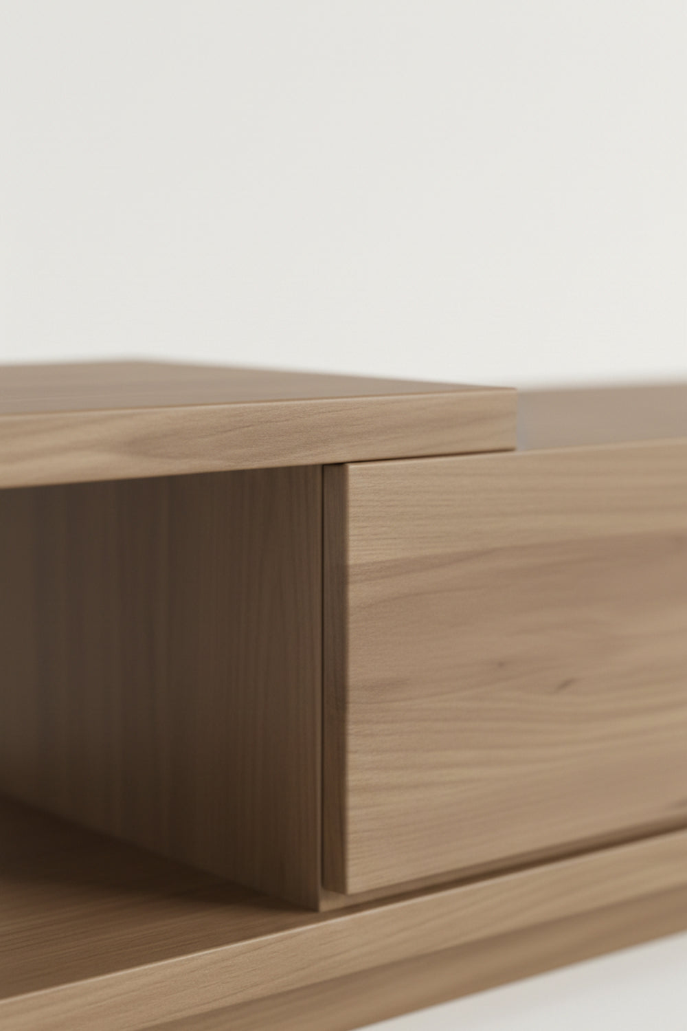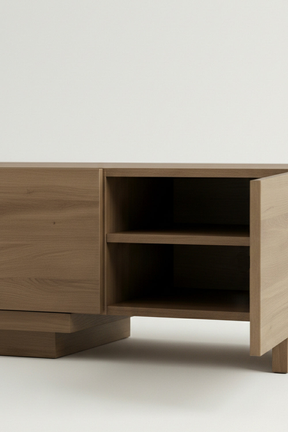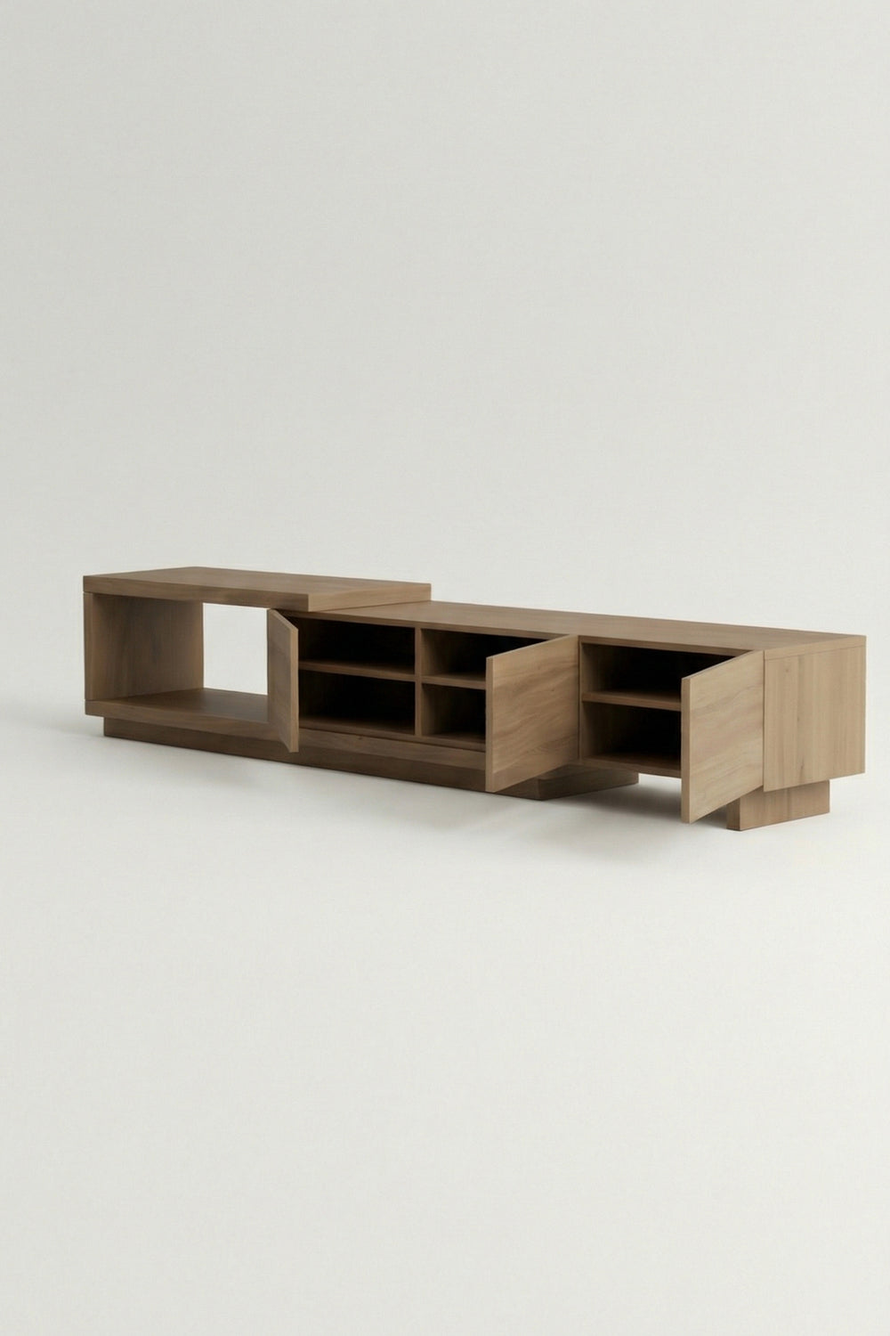 Crafted for those who appreciate modern minimalism, this unit features a unique asymmetric split-level top. This tiered layout creates a sophisticated visual flow, offering a dedicated platform for your screen while leaving a lower tier perfect for soundbars or decor.