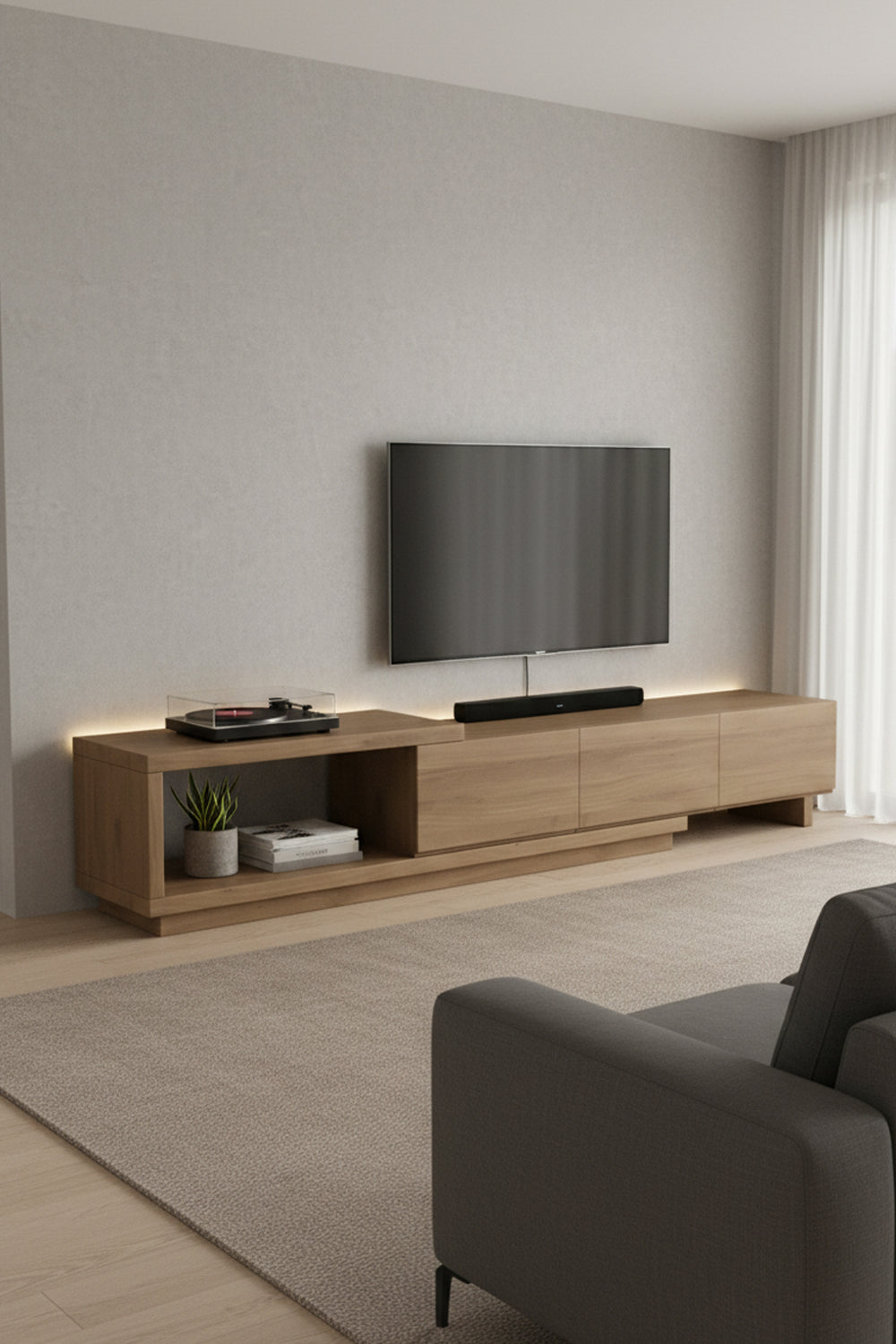Elevate your living space with the Panoramic TV Unit—where architectural design meets functional storage.